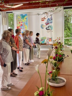 August 30, 2025 Workshop Kaden Ryu On August 30, 2025, the Ikebana International Geneva Chapter held a Kaden Ryū School workshop conducted by Véronique Masurel (I.I. Basel Chapter). The event was attended by eighteen members and was warmly appreciated by all participants.