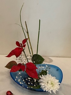 The members came to the Meet in red, green or white and filled the arena with Christmas cheers. Everyone participated in this small and intimate Christmas Meet with full vigor and excitement and created Ikebana arrangements based on Christmas theme. The event also witnessed lots of surprise guests who admired and appreciated the Ikebana arrangements and wholeheartedly participated in the Christmas festivities. At the end of the meeting there was an exchange of Christmas gifts, followed by sumptuous refreshments.