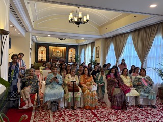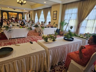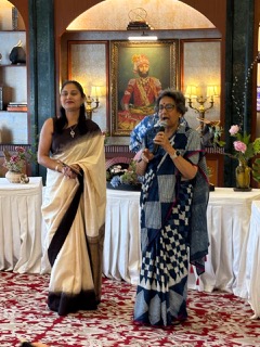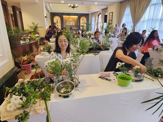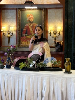 On 26th August 2025 at the Eros hotel, New Delhi, our chapter hosted a special Sogetsu Ikebana Workshop. This workshop was guided by Riji Veena Dass, Director, Sogetsu School Delhi, who introduced the Style-Version 5 of the Sogetsu School. Ably assisted by Saveena Gadhoke and Neena Verma, she demonstrated how traditional aesthetics merge beautifully with contemporary design. This is a variation in which the whole arrangement is divided into two parts within one big container.