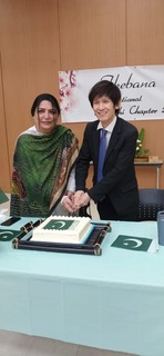 Mr. Nakagawa’s presence and his message in Urdu, the national language of Pakistan, particularly resonated with the participants. After these heartfelt messages, the chief guest and the president cut the cake, followed by everyone uniting to sing the national anthem and a popular patriotic song. To mark the occasion, the president presented a beautiful Ikebana arrangement, crafted by her using a spathe, to the chief guest.