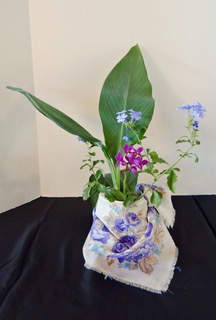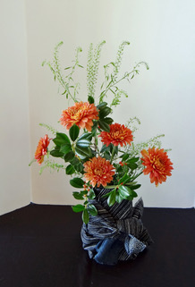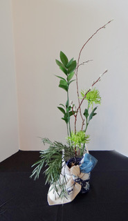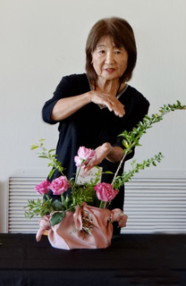 Following a short business meeting, President Yuki Brown and Kimiko Ikeda demonstrated how to use ‘Furoshiki’ to wrap a container for an Ikebana arrangement. They also demonstrated how to wrap a Kleenex tissue box using a special holiday furoshiki and also how to wrap a wine bottle for a gift.